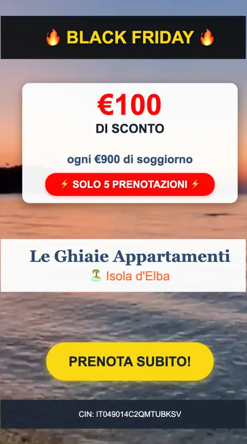 🌴 Registrati o accedi subito per ottenere il tuo coupon sconto per l’estate 2026 e risparmiare sulla tua prossima vacanza all’Isola d’Elba!